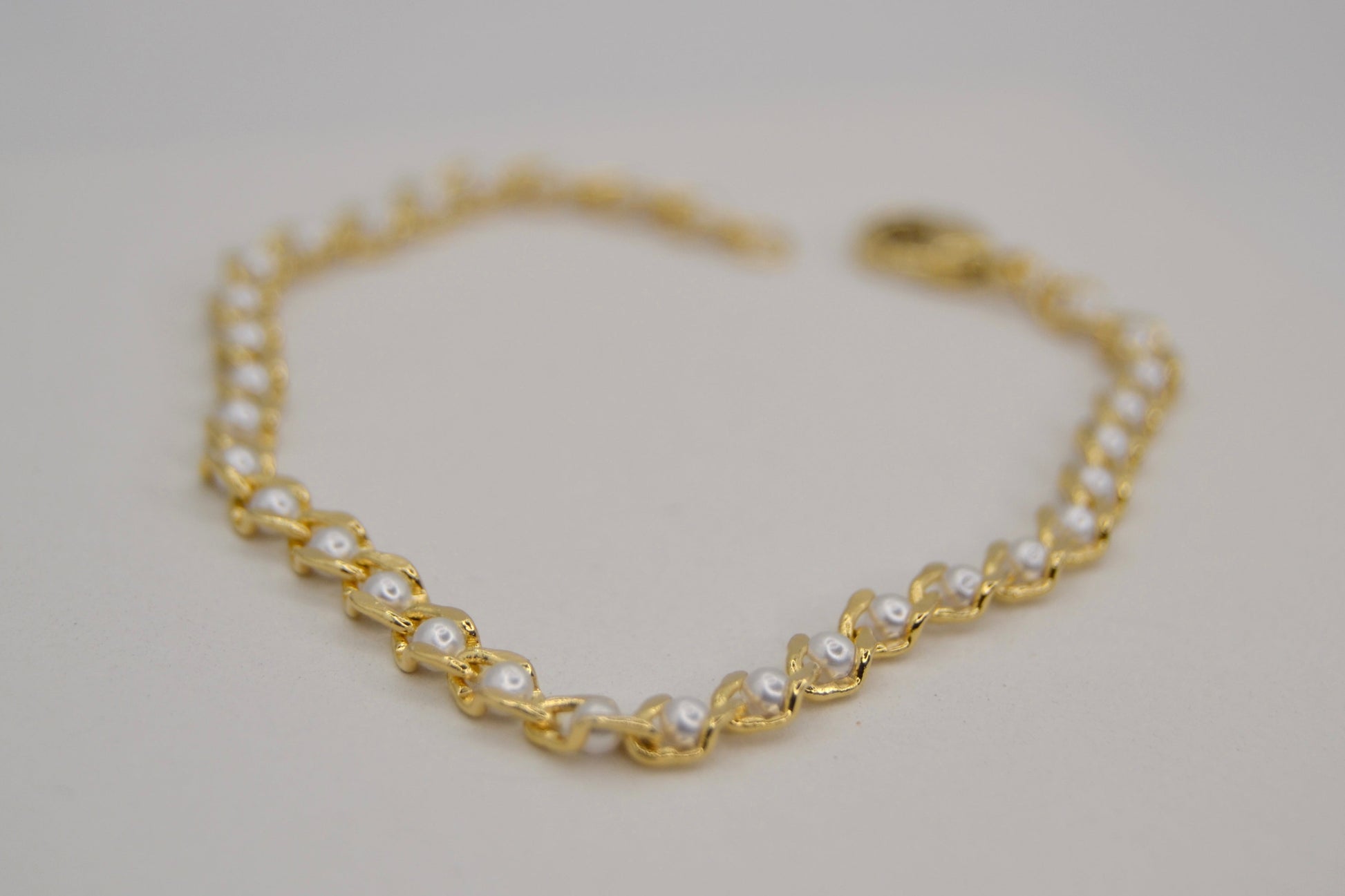 Crafted in 18k gold, this elegant pearl bracelet offers a timeless and durable accessory for everyday wear. Elevate your style and add a touch of luxury to any outfit.